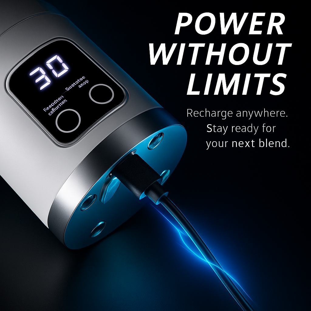 Designed for those who never slow down, this smart portable blender keeps up with your pace. With versatile USB charging, you can power it through your laptop, car, or power bank—wherever you are. The high-capacity battery ensures you’re always ready to blend your favorite smoothies, shakes, or juices on demand, no outlet required.